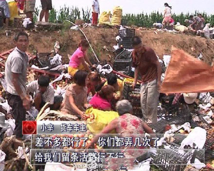 8月23日上午,辛先生駕駛的貨車在焦桐高速泌陽段發(fā)生傾翻,散落在地的20噸蘋果遭附近村民哄搶。辛先生本來以為老百姓是跑來幫忙的,沒想到一個接一個打電話,都是過來搶貨的?!安畈欢喽夹辛?,給我們留條活路行不行?”
