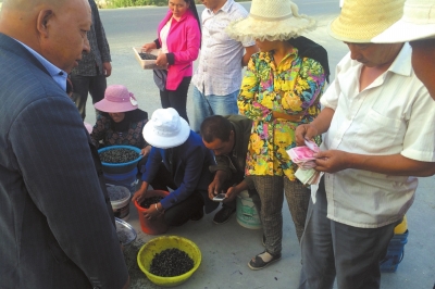 現(xiàn)場(chǎng)收購(gòu)盜采者采摘來(lái)的黑枸杞。