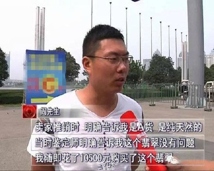 鄭州市民閻先生花了10500元在珠寶展銷會(huì)上買了一塊號(hào)稱A貨的翡翠,然而,鑒定結(jié)果卻顯示他買的其實(shí)是劣質(zhì)的B貨,也就是強(qiáng)酸腐蝕后人工加工的翡翠。目前,該展位賣家不見蹤影,主辦方也稱自己無責(zé)任。