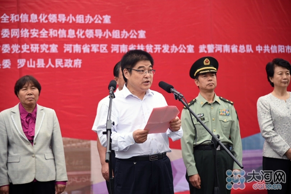 大河網(wǎng)訊(河南日報記者 胡巨成 大河網(wǎng)記者 宋向樂 范昭 通訊員劉宏冰)9月26日,按照中央網(wǎng)信辦統(tǒng)一部署,“長征路上奔小康”河南網(wǎng)絡(luò)媒體“走轉(zhuǎn)改”主題采訪活動在紅25軍長征出發(fā)地——羅山縣何家沖啟動。省委常委、宣傳部長趙素萍出席啟動儀式為采訪團授旗,并勉勵大家多走多看,發(fā)揚長征精神,講好長征故事,將精彩報道奉獻給廣大網(wǎng)友。中央網(wǎng)信辦網(wǎng)絡(luò)新聞信息傳播局副局長劉沖出席啟動儀式并講話,省委宣傳部副部長、省委網(wǎng)信辦主任何彧致辭,省軍區(qū)副政委兼政治部主任冷志義等出席啟動儀式。