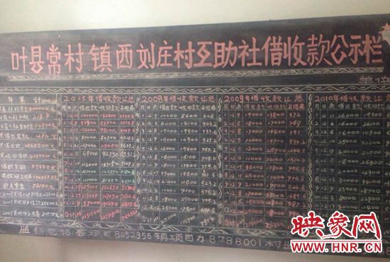常村鎮(zhèn)西劉莊村互助社的借收款公示欄