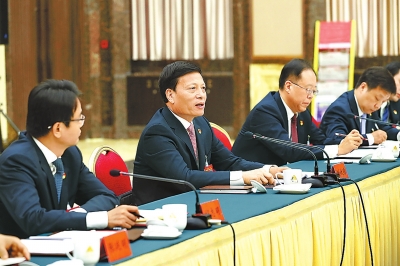10月31日,謝伏瞻同志與出席省第十次黨代會(huì)鄭州市代表團(tuán)的代表們一起審議中共河南省第九屆委員會(huì)工作報(bào)告。記者董亮攝
