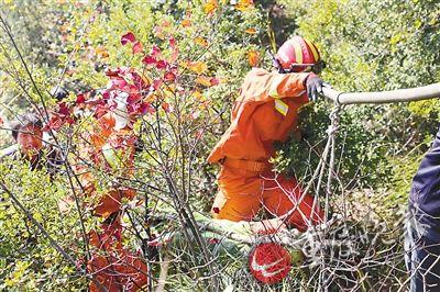 從上午9時(shí)開始,當(dāng)?shù)卮迕衽G斬棘,慢慢護(hù)送白靜波遺體下山。消防官兵也從其它地方迂回趕來,歷經(jīng)6小時(shí)才將遺體送下山。