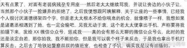 前段時(shí)間,地鐵上一90后女孩因?yàn)樯砥跊]有給大媽讓座,大媽就諷刺女孩沒素質(zhì),不懂得尊老愛幼。女孩因?yàn)樯砥谛那椴缓茫头瘩g了對方幾句。