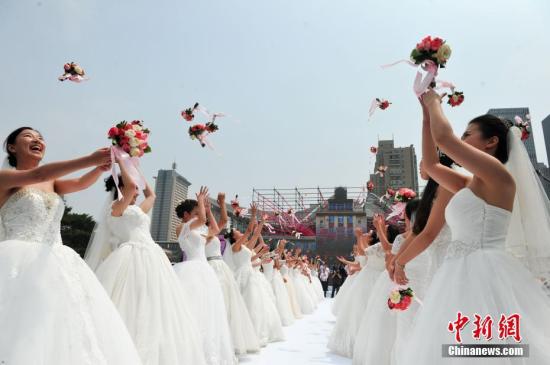 5月28日,東北大學(xué)2017校友集體婚禮在東北大學(xué)校園隆重舉行。來自海內(nèi)外的45對校友新人回到母校,在母校師生的見證下完成了人生最重要的儀式。 中新社記者 于海洋 攝