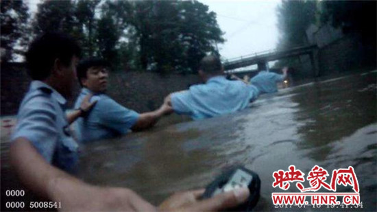 7月16日19時,新密市突降暴雨。19時30分許,正在附近執(zhí)行任務(wù)的新密市公安局西大街派出所民警呂鵬輝和輔警張靖、韓耀鵬、張文龍、張永康等接110指令:于家崗鐵路橋處有人被困在水中,請馬上前去解救。