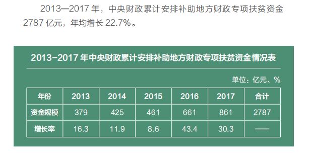 今年,中央財政預算擬安排補助地方專項扶貧資金 1061 億元,首次突破千億元規(guī)模。中央財政新增扶貧投入及有關(guān)轉(zhuǎn)移支付向深度貧困地區(qū)傾斜。