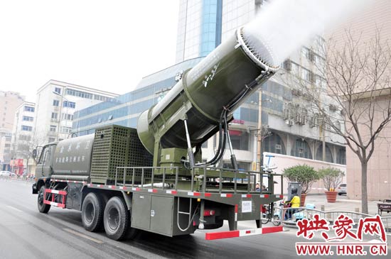映象網(wǎng)訊(記者 王濤 通訊員 司佳 文/圖)“向著霧霾開炮……向著揚(yáng)塵開炮……”12月26日上午,鄭州市經(jīng)三路街頭出現(xiàn)了一輛形似炮筒的“大家伙”,吸引了來往車輛及行人的目光。