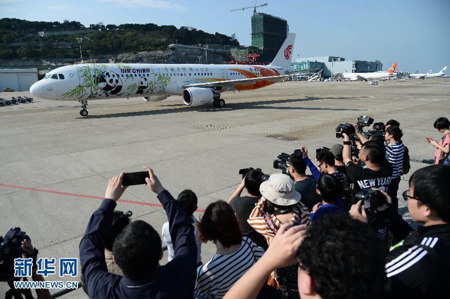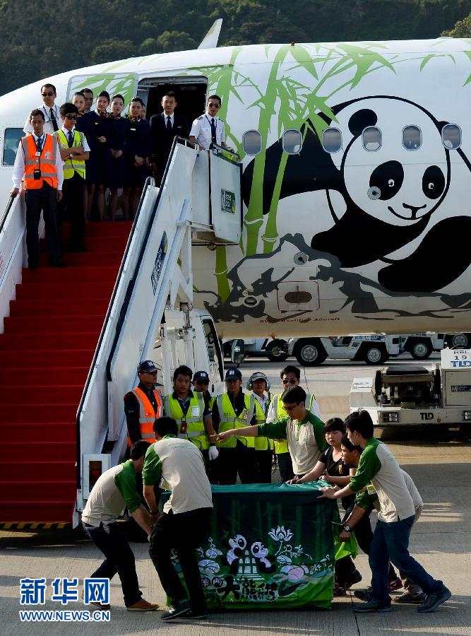 4月30日,大熊貓抵達(dá)澳門機(jī)場(chǎng)。當(dāng)日16時(shí)許,中央政府贈(zèng)送澳門的新一對(duì)大熊貓運(yùn)抵澳門,澳門特區(qū)政府行政法務(wù)司司長(zhǎng)陳海帆等官員及部分少年兒童在機(jī)場(chǎng)迎接。大熊貓經(jīng)檢疫人員檢查后在運(yùn)輸籠中向前來(lái)接機(jī)的人們短暫亮相。目前它們身體狀況良好,隨后將前往金像農(nóng)場(chǎng)進(jìn)行30天隔離檢疫。新華社記者張金加攝