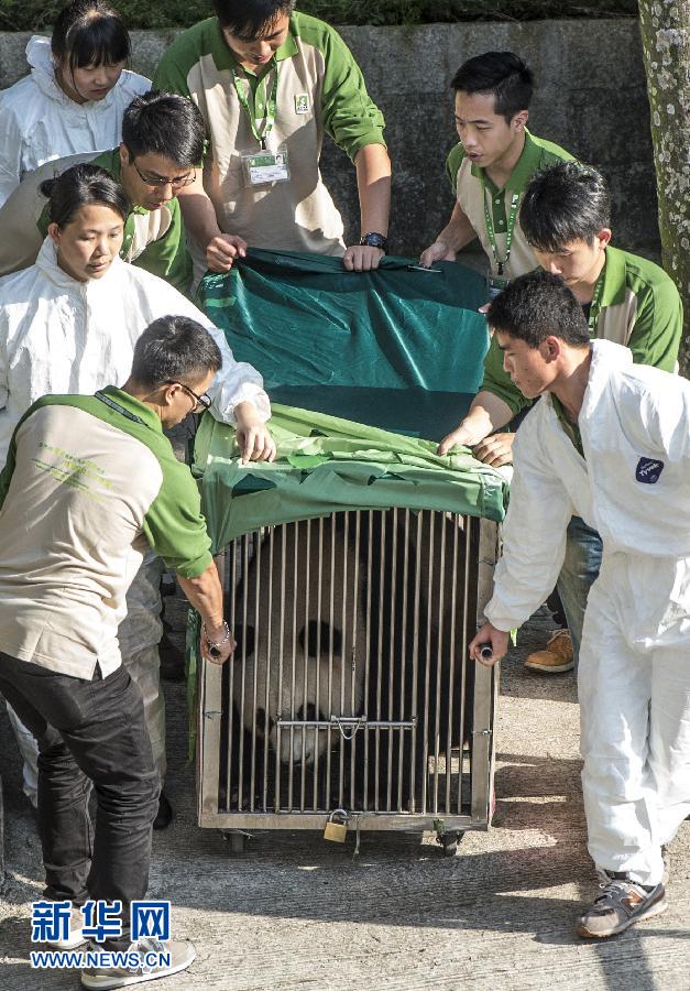 4月30日,工作人員將大熊貓運(yùn)送到澳門路環(huán)金像農(nóng)場(chǎng)的隔離設(shè)施地點(diǎn)。當(dāng)日16時(shí)許,中央政府贈(zèng)送澳門的新一對(duì)大熊貓運(yùn)抵澳門,澳門特區(qū)政府行政法務(wù)司司長(zhǎng)陳海帆等官員及部分少年兒童在機(jī)場(chǎng)迎接。大熊貓經(jīng)檢疫人員檢查后在運(yùn)輸籠中向前來(lái)接機(jī)的人們短暫亮相。目前它們身體狀況良好,隨后將前往金像農(nóng)場(chǎng)進(jìn)行30天隔離檢疫。新華社記者張金加攝
