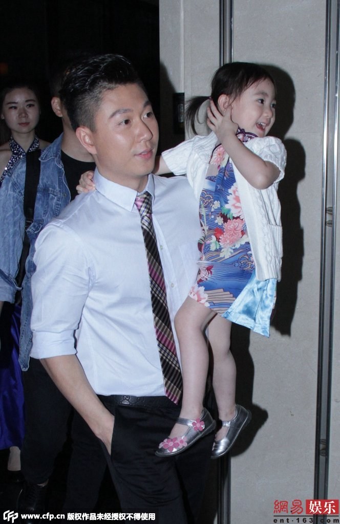 近日李小鵬抱女兒快步離開活動(dòng)現(xiàn)場(chǎng)。女兒奧莉身穿花旗袍配白色外套,還不停做表情賣萌搶鏡?! ?