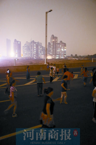 前天晚上7時(shí)30分,鄭州市南三環(huán)與京廣路交叉口向南500米路西,幾名市民沿著高架橋匝道向二層走去。高架橋二層橋面西側(cè),人們?nèi)宄扇?,大人們邊走邊聊天,小孩兒則在車(chē)道上嬉笑玩耍。東側(cè),一名女士大步快速地向北走,“不刮風(fēng)不下雨,沒(méi)事兒就來(lái)這鍛煉。”此外,還有30多名市民正在跳廣場(chǎng)舞。