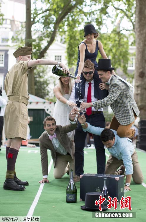 當?shù)貢r間2015年7月11日,英國倫敦,貝德福德廣場花園舉辦一年一度的“紳士運動會”。這是一個不以打破記錄為榮,而專為紳士打扮裝帥??岫O(shè)的趣味運動會,比賽項目包括“雨傘騎(車)斗”、“燙衣板沖浪”、“背人賽跑”等,現(xiàn)場參加者不一定會出汗出力,但一定要打扮成傳統(tǒng)紳士淑女風格,而叼煙、小酌一杯的鏡頭更讓人覺得這是一場嘉年華。