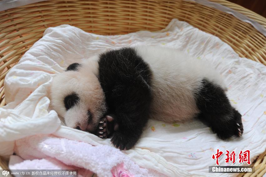 一只酣睡中的熊貓寶寶,睡姿萌倒眾生。 圖片來源:CFP視覺中國