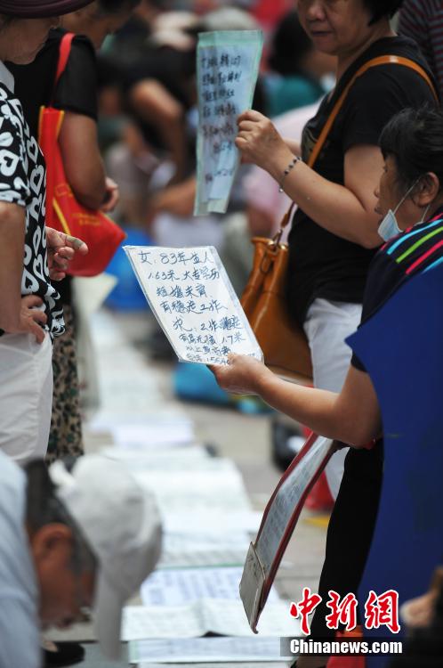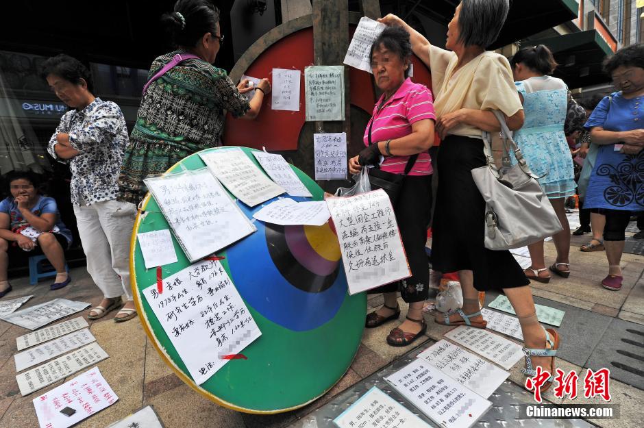 家長(zhǎng)們將征婚信息貼在高出期望得到跟多關(guān)注。中新社發(fā) 孫昊聲 攝