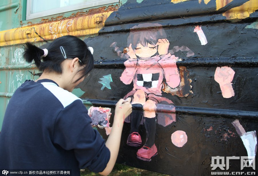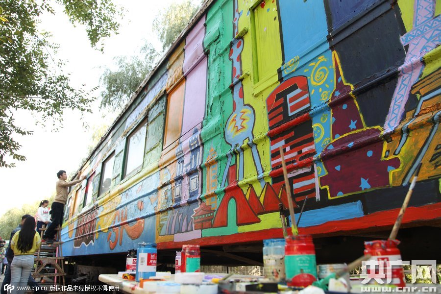 2015年10月10日,鄭州四禾美術(shù)中學(xué)充分發(fā)揮美術(shù)生的優(yōu)勢(shì),對(duì)火車車身1進(jìn)行涂鴉改造,使火車宿舍看起來(lái)更加漂亮。