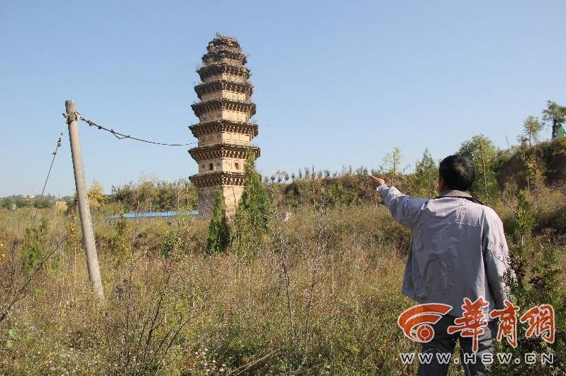 12日,住在離塔不遠(yuǎn)處的村民趙先生告訴華商報(bào)記者,在他的印象中,這座塔發(fā)生傾斜已經(jīng)有20多年了,大約在2005年前后。銅川新區(qū)管委會(huì)的工作人員在塔身上系上了一根鋼索,目的是為防止塔身繼續(xù)傾斜。“趕緊把這塔保護(hù)一下,再不保護(hù)這塔可能就沒(méi)有了?!壁w先生說(shuō),除了傾斜、風(fēng)蝕,導(dǎo)致塔體破壞外,偶爾還有盜墓賊光顧,他們?cè)谒車(chē)蛄撕脦讉€(gè)盜洞,這也加速了塔的破壞。
