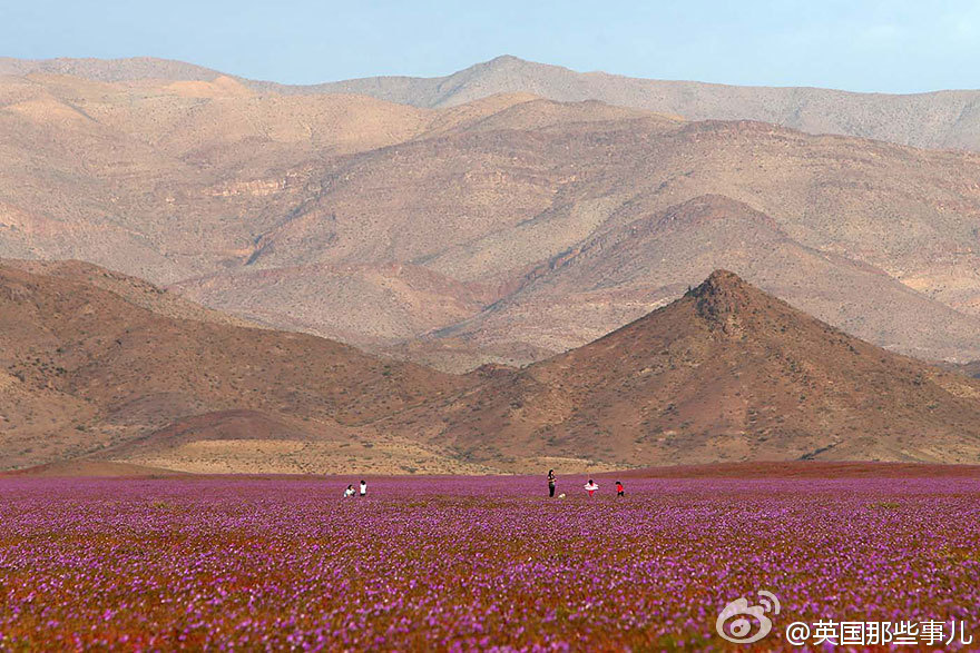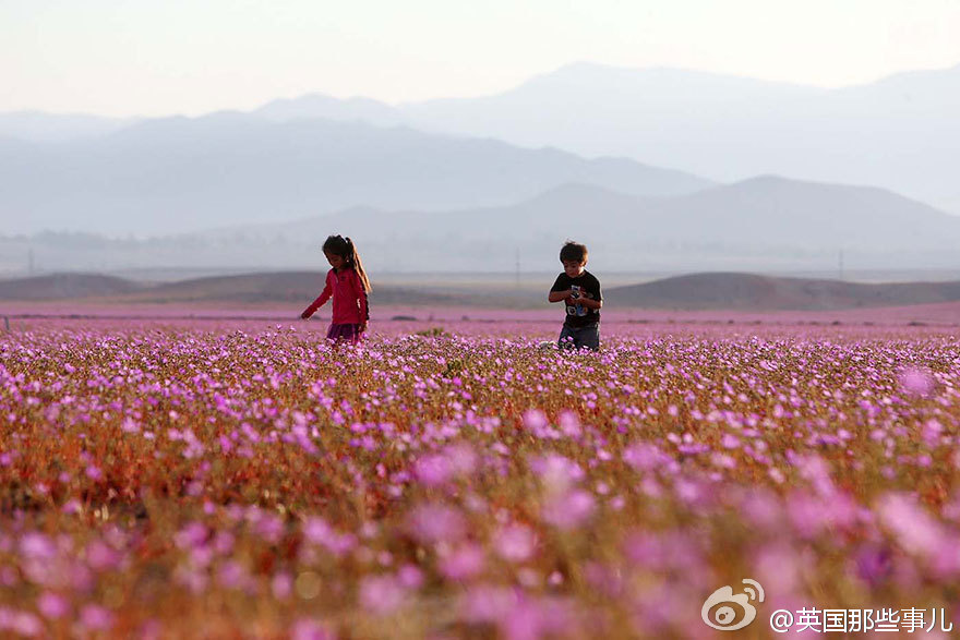 智利阿塔卡馬沙漠本是世界上最干燥的沙漠,今年的厄爾尼諾現象帶來了一場超乎以往的大雨,沙漠土地里休眠的各種花朵種子瞬間發(fā)芽、生長、開花,在這以往死寂的沙漠綻放。