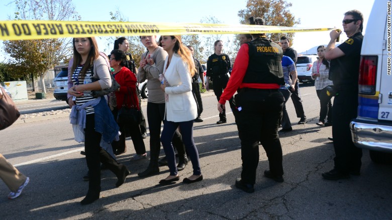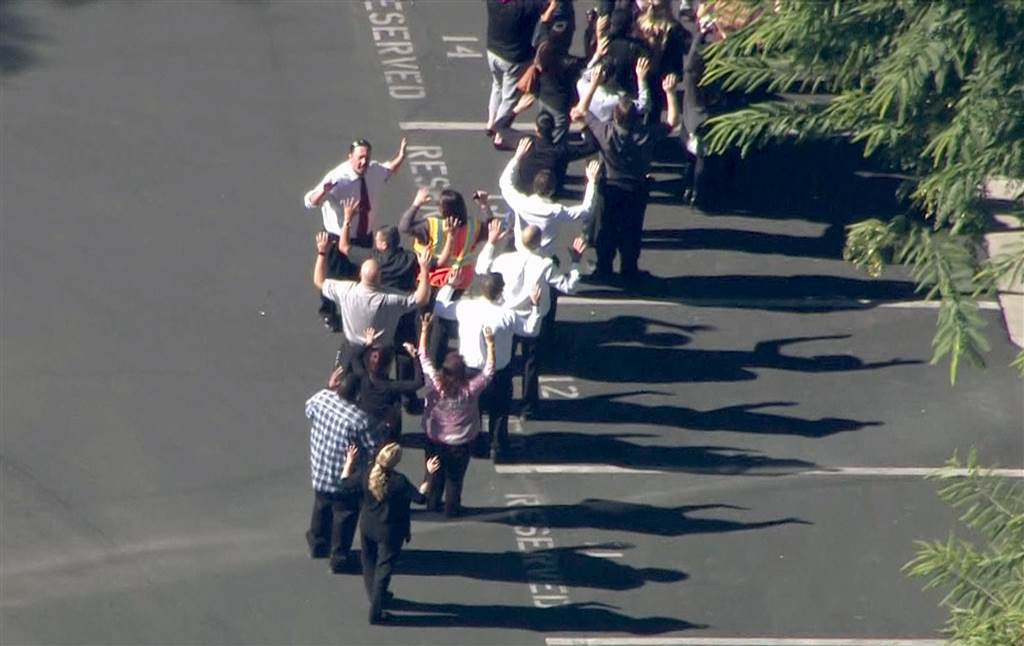 12月3日,美國加利福尼亞州的圣貝納迪諾(San Bernardino)發(fā)生槍擊,受害者多達20人,圖為當局疏散人群。