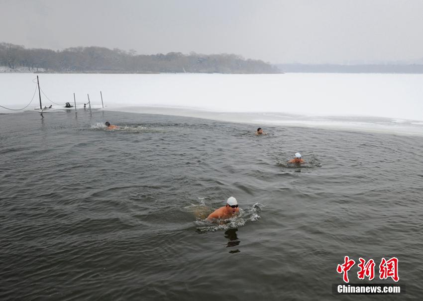 12月2日,長春市民在南湖公園冬泳。一場入冬以來最大規(guī)模的降雪過后,長春市氣溫已達(dá)零下15攝氏度,但對于冬泳愛好者來說,這恰是他們享受冬季快樂的開始。 張瑤 攝