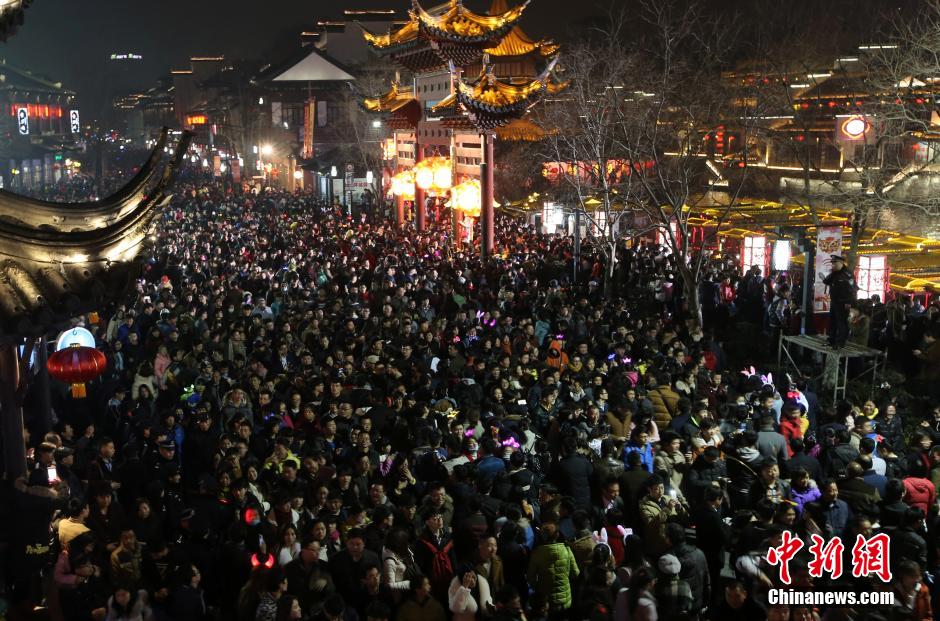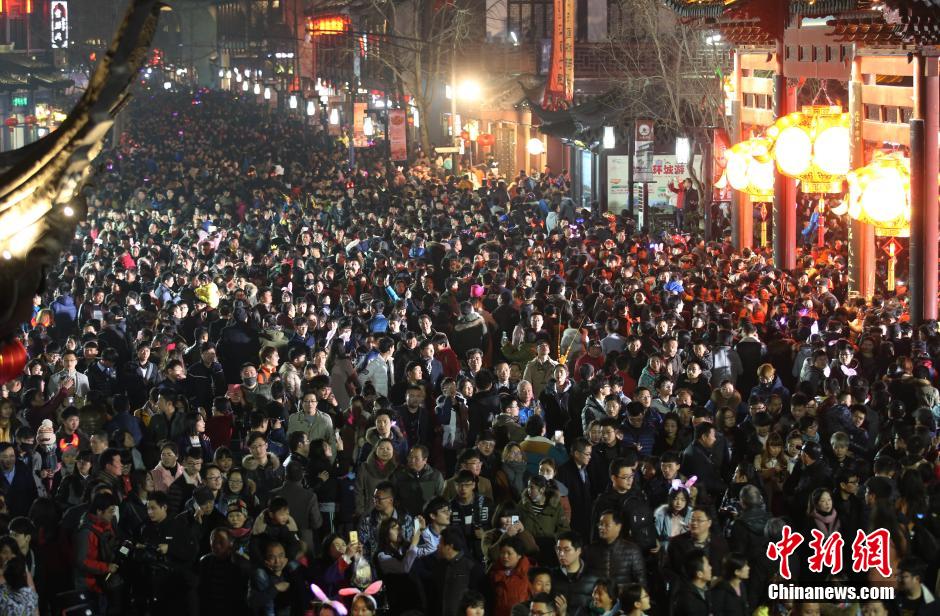 2月22日晚,南京夫子廟廣場上人山人海。當(dāng)日是元宵節(jié),數(shù)十萬市民和游客涌進(jìn)南京夫子廟景區(qū)內(nèi)欣賞秦淮燈會,瞬間開啟“人從眾”模式。秦淮燈會又稱“金陵燈會”,是流傳于南京地區(qū)的特色民俗文化活動,主要在每年的春節(jié)至元宵節(jié)期間舉行。 中新社記者 泱波 攝