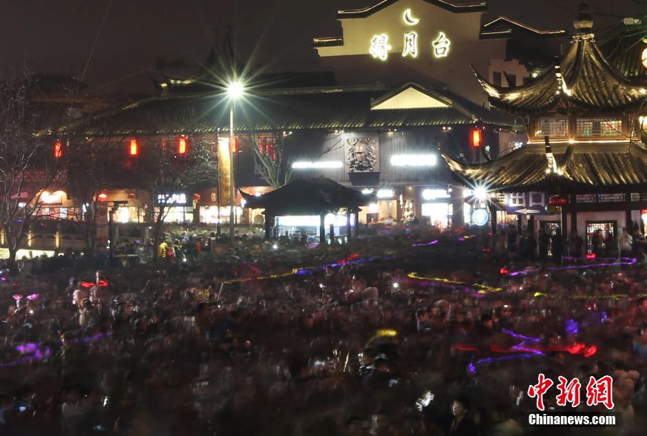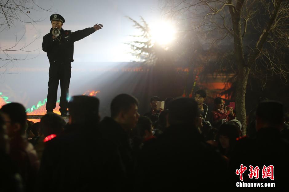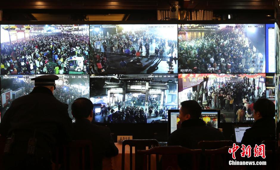 2月22日晚,南京警方在監(jiān)控涌進(jìn)夫子廟廣場上的人流。 中新社記者 泱波 攝