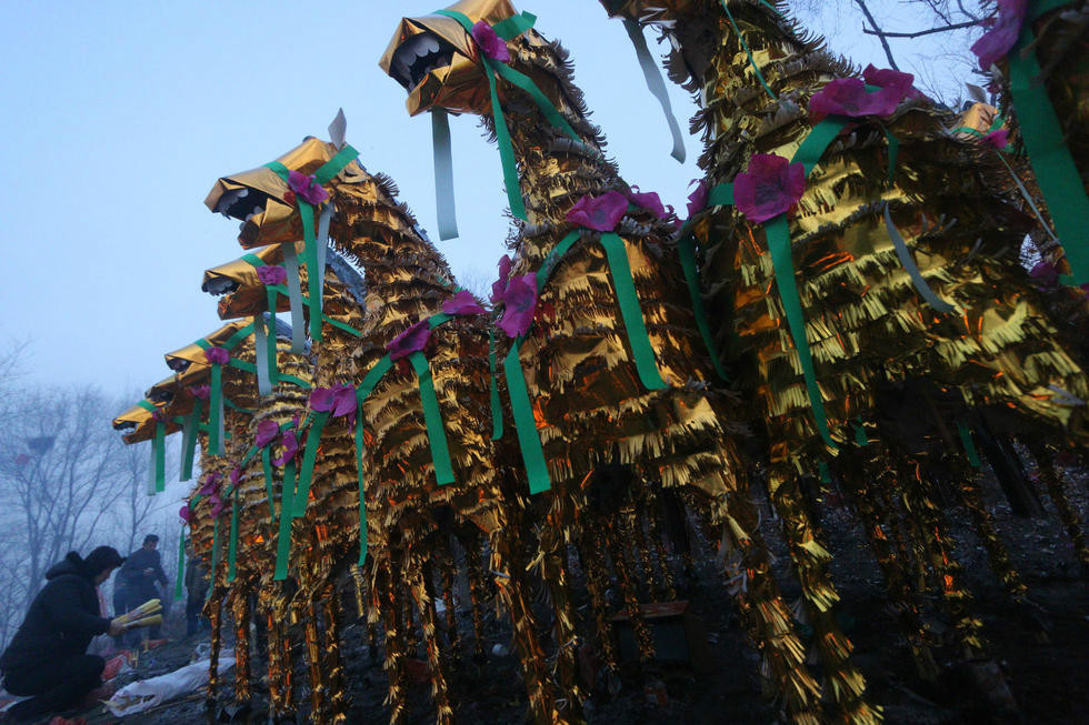 2016年2月23日凌晨,山東省濱州市惠民縣小霹靂莊,宋代古冢牛保冢上一年一度的正月十六祭祀活動(dòng)正式開(kāi)始,方圓百里萬(wàn)余百姓陸陸續(xù)續(xù)趕來(lái)祭祀,以求風(fēng)調(diào)雨順,家和事興。多種祭祀用紙馬先后被抬上祭壇引燃,化作火龍直沖云天,數(shù)量足有數(shù)千匹之多,場(chǎng)面壯觀且奇異,親臨現(xiàn)場(chǎng)宛若置身神鬼大片,令人印象深刻。