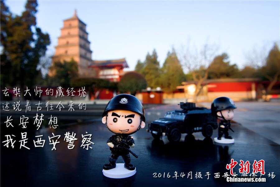 西安警方5日發(fā)布了十張Q版警察海報(bào),包括社區(qū)民警、交警、特警等多個(gè)警種,所有上鏡“民警”都是萌酷可愛的Q版公仔,Q版的警務(wù)站和防爆特種警車也首次亮相。海報(bào)中,Q版警察在鐘樓、大雁塔、小雁塔等西安著名地標(biāo)執(zhí)勤巡邏、疏導(dǎo)交通,演繹著西安警察默默守護(hù)平安的平凡故事。西安市公安局新聞中心主任鄭朝剛介紹,這組圖片也拉開了“2016平安之音 西安警察故事”主題活動序幕,西安警方將從即日起至今年年底,以獨(dú)特的視角和生動的形式,講述一線民警在守護(hù)平安、打擊犯罪中平凡而又不凡的故事。張倩/文 西安警方供圖