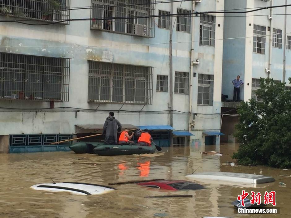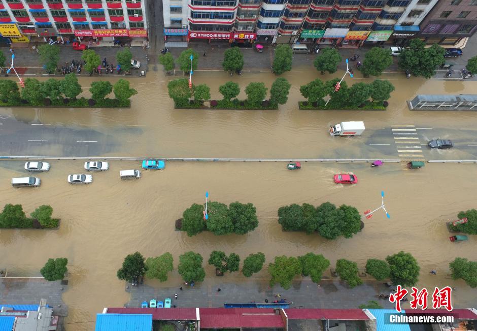 5月5日,地處湘南的永州市道縣遭遇暴風雨襲擊,縣城內多處低洼路段被水淹沒。當地防汛部門正嚴密監(jiān)控雨情、水情,確保安全度汛。 中新社發(fā) 何紅福 攝