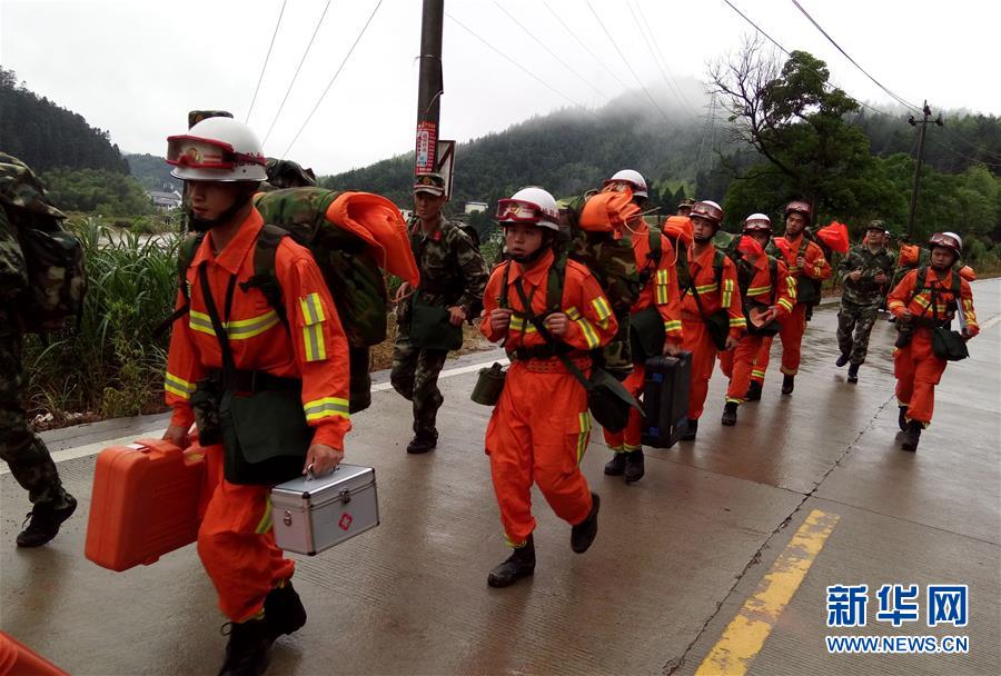 5月8日,由于當地部分道路坍塌,武警水電二總隊六支隊官兵徒步馳援福建泰寧山體滑坡現(xiàn)場。