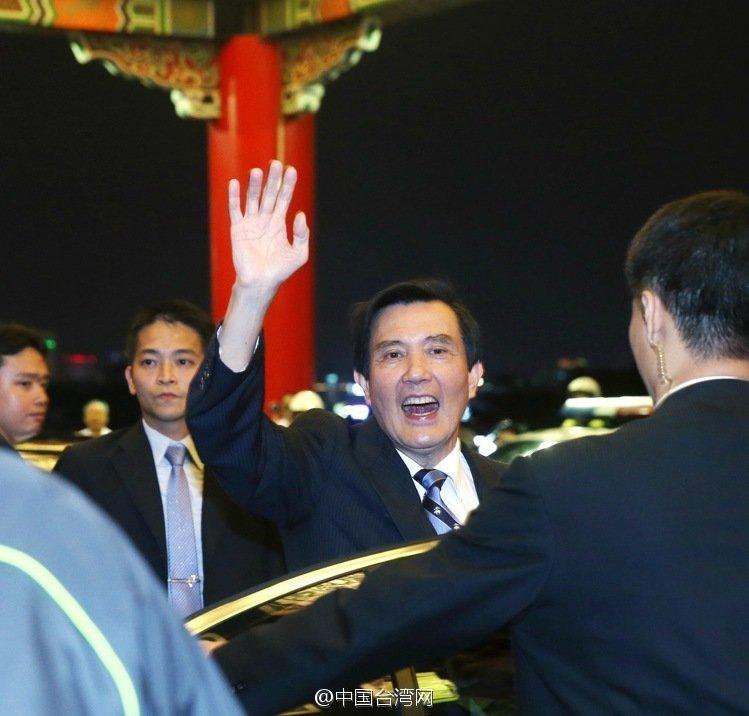 圓山飯店夜宴結(jié)束后,馬英九揮手對大家“再見”。