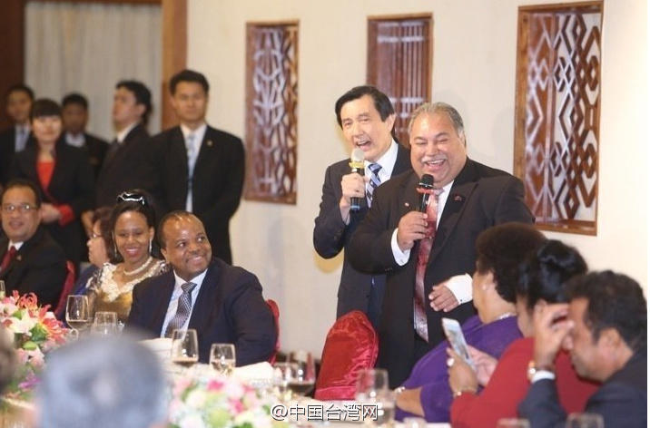 當(dāng)晚,馬英九在圓山酒店昆侖廳設(shè)宴款待外賓,席間一時興起,與瑙魯總統(tǒng)瓦卡合唱了一曲“Let it be me”。隨后開玩笑表示,先前外界問他卸任以后要作什么?自己都宣稱是機(jī)密不能透露,今天終于可以宣布,就是要和瓦卡總統(tǒng)合組一個樂團(tuán),臺下大笑鼓掌。