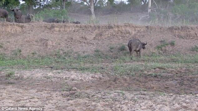 這組影像的記錄者是南非動物保護區(qū)的一位職業(yè)向導。它表示,這只機智的水牛被兩群獅子前后夾擊,被困在包圍圈里。