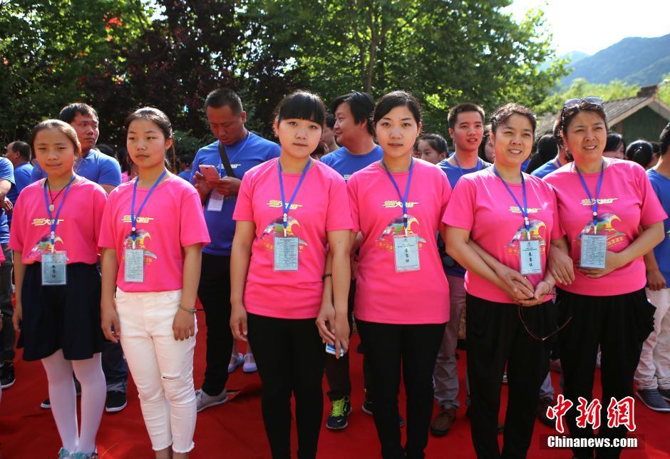 5月29日,河南三門峽,來自全國的老中青100余對雙胞胎聚集一起拍攝合影照,他們手拉手“向天笑”,一樣的裝束、一樣的臉龐,看暈觀眾,仿佛走進(jìn)了重影的世界。 王中舉 攝