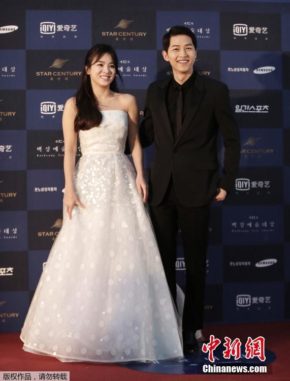 當(dāng)?shù)貢r間6月3日,韓國年度電視、電影盛事“第52屆百想藝術(shù)大獎”在韓國首爾的慶熙大學(xué)登場,宋仲基和宋慧喬憑借《太陽的后裔》一舉拿下人氣大獎。宋仲基更在臺上感動告白搭檔宋慧喬“謝謝在我身邊的宋慧喬”。