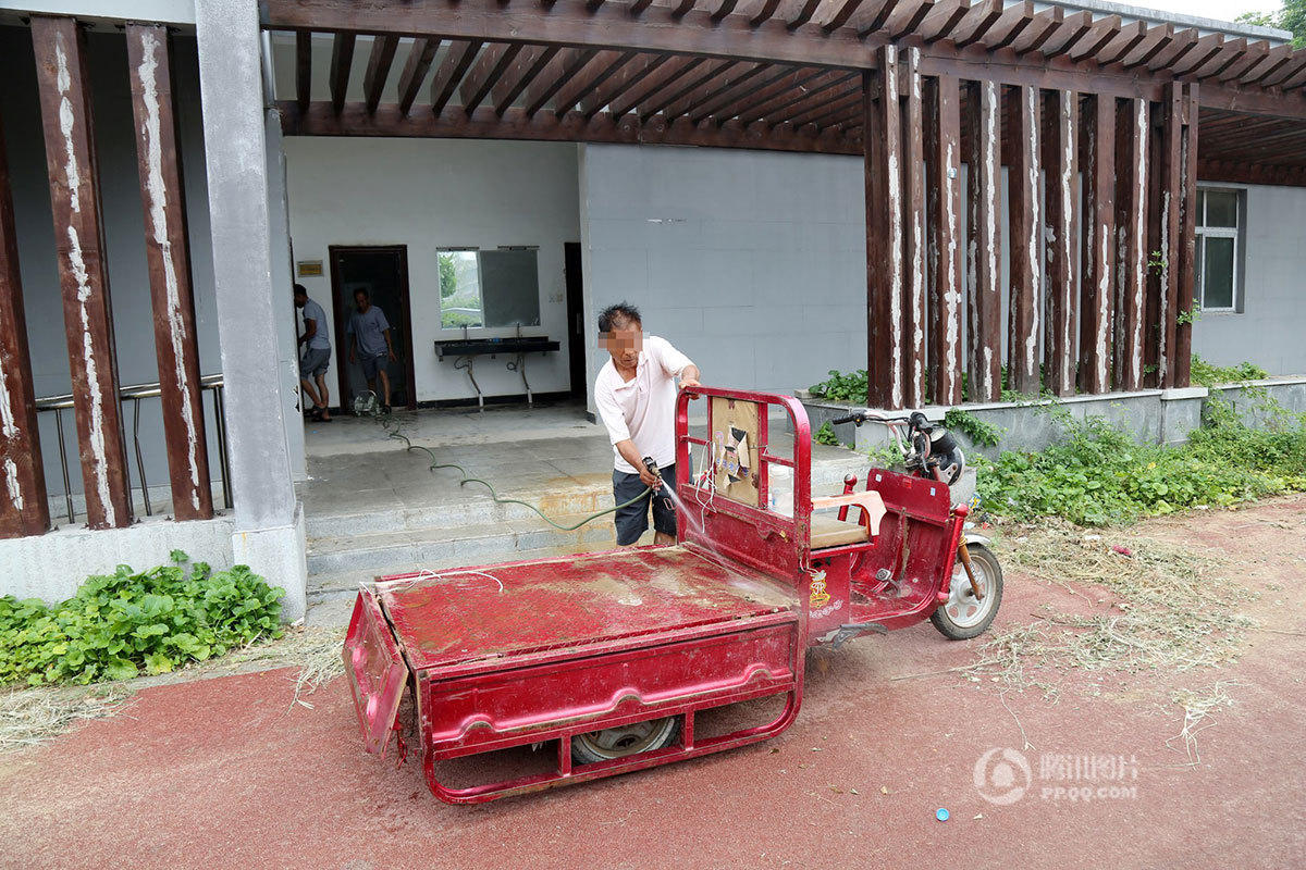 對此,鄭州高新區(qū)市政園林管理局相關(guān)負(fù)責(zé)人稱,雖西三環(huán)廊道建成3年了,但一直未移交給他們。前不久,施工方剛對其進(jìn)行了移交,但因附近的城中村拆遷,公廁一直使用臨時電,因電壓不穩(wěn),才一直未對外開放?!斑@幾天,我們再和供電公司溝通一下,爭取盡快通上正式電,恢復(fù)公廁正常使用?!痹撠?fù)責(zé)人說。圖為幾名工人在用廁所里的水洗車。
