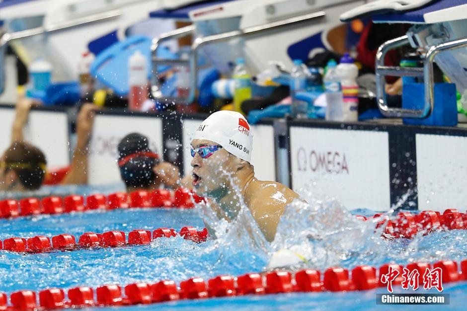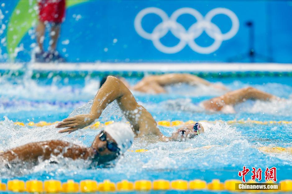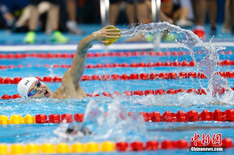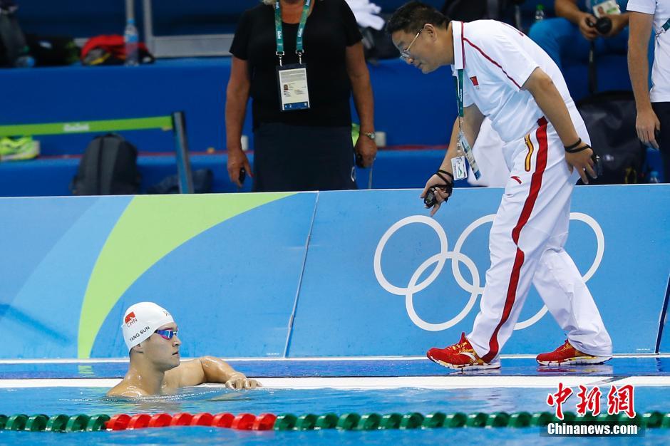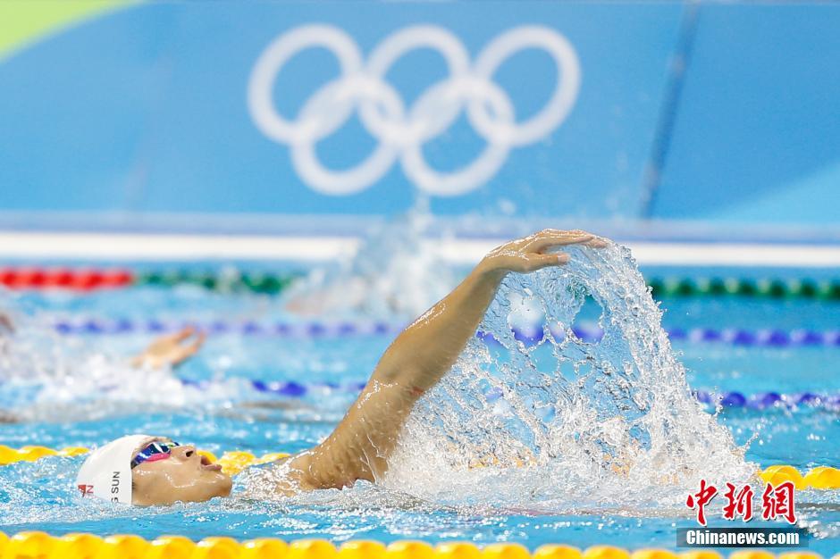 當(dāng)?shù)貢r(shí)間8月4日,里約奧林匹克水上項(xiàng)目體育館,中國游泳選手孫楊在泳池內(nèi)進(jìn)行賽前訓(xùn)練。中新網(wǎng)記者 盛佳鵬 攝