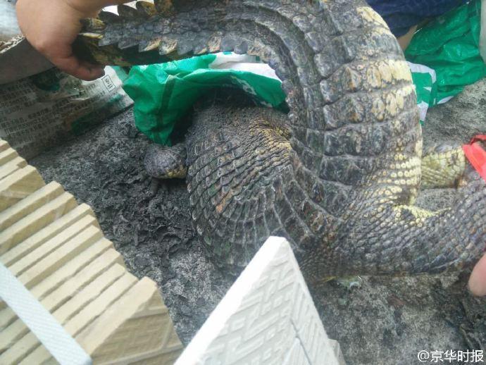 后來(lái)了解到,她家樓上5樓一住戶家里養(yǎng)了2條鱷魚(yú),昨晚其中一條從窗戶逃跑了。