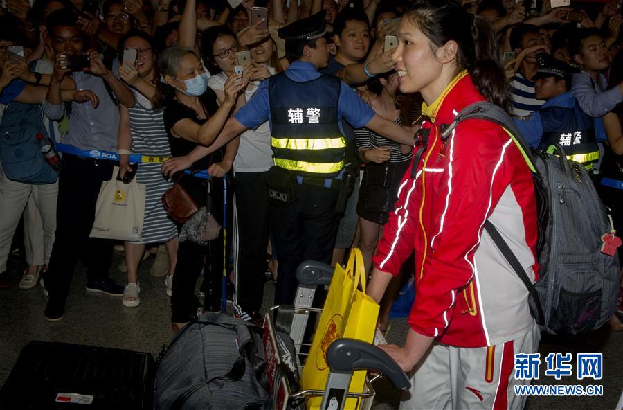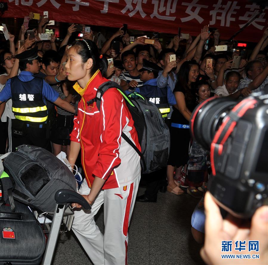 8月23日,中國女排隊員徐云麗抵達(dá)北京首都國際機(jī)場。當(dāng)晚,在里約奧運會獲得金牌的中國女排回國。 新華社記者陳曉偉攝
