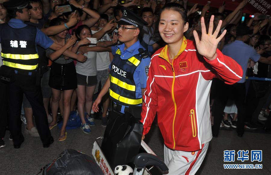 8月23日,中國女排隊員袁心玥抵達(dá)北京首都國際機(jī)場。當(dāng)晚,在里約奧運會獲得金牌的中國女排回國。 新華社記者陳建力攝