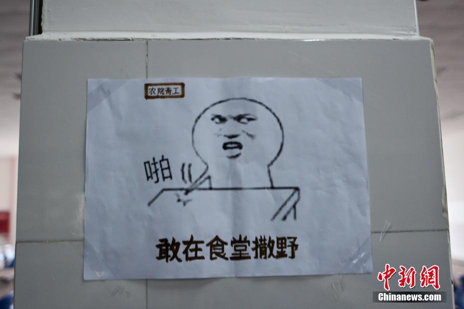 “魔性”表情包告示牌在四川農(nóng)業(yè)大學(xué)食堂隨處可見。 四川農(nóng)業(yè)大學(xué)供圖