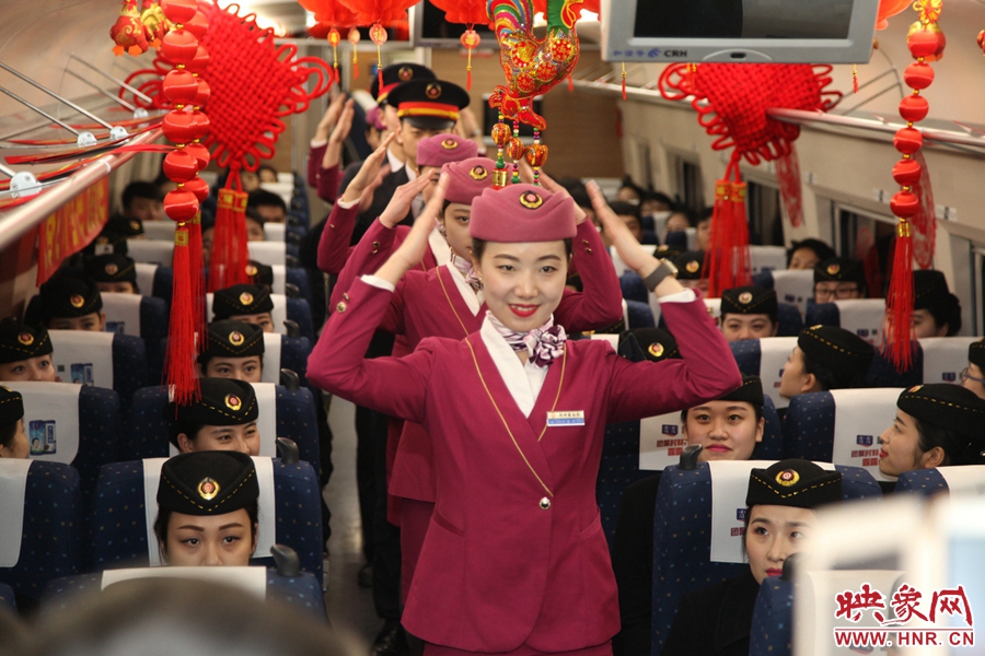 映象網(wǎng)快訊(記者 阮海峰 文/圖)1月9日,鄭州客運(yùn)段高鐵一隊(duì)組織在家休班的干部職工60余人在熱備車上,召開“平安春運(yùn),有序春運(yùn),溫馨春運(yùn)”動(dòng)員大會(huì)。
