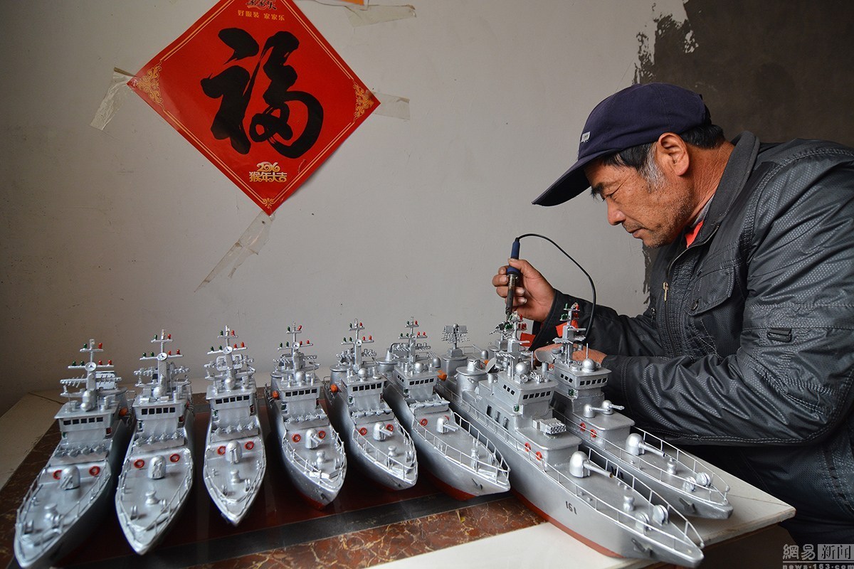 1月9日,今年59歲的郭長海,是山東省日照市山海天旅游度假區(qū)肖家村一位普通的漁民。從2005年開始,他自己純手工制作“軍艦”模型,可以說是到了癡迷的程度。十幾年來,他先后花費近6萬多元人民幣,造出了7艘可實現(xiàn)模擬槍炮發(fā)射的“軍艦”模型,十幾艘小軍艦模型。幾年來,因為他的癡迷,郭長海也成為網(wǎng)絡、報紙、電視,以及自媒體等關注報道的對象,成為“網(wǎng)紅”。