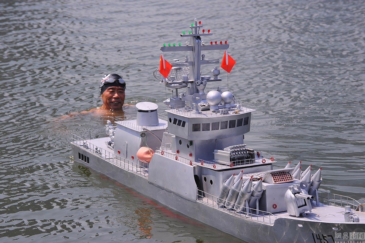 十幾年來,他先后成功的造出了“導彈驅(qū)逐艦”2艘,“巡洋艦”4艘,“導彈護衛(wèi)艦”1艘。2014年12月13日,郭長海將半年時間打造的新作“導彈護衛(wèi)艦”拉到村里的大街上向村民展示,這艏長3.07米,高1.2米,寬約0.8米的“導彈護衛(wèi)艦”在他的遙控指揮下,成功實現(xiàn)了陸地上的前進、后退、左右拐彎,并可模擬槍炮發(fā)射火藥的效果。為了驗證水上功夫,2015年8月13日,郭長海在日照奧林匹克水上公園龍舟碼頭,為“導彈護衛(wèi)艦”進行試航,經(jīng)過半個多小時的調(diào)試,最終試航成功。連續(xù)兩年在眾人面前的試驗,均獲得成功,這大大增強了他的信心。
