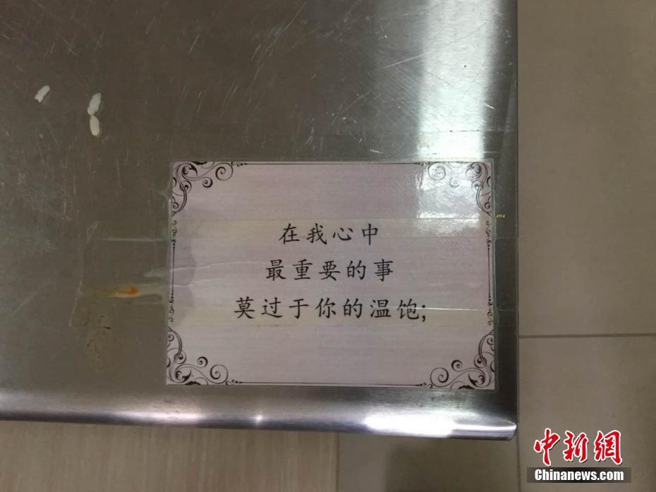 “這些情詩(shī)是開學(xué)前貼上的,剛開始只是想讓餐廳更個(gè)性化一點(diǎn)。”德寶朕說(shuō),很多人覺得食堂就是個(gè)做大鍋菜的地方,吃飽肚子就行?!拔蚁爰右稽c(diǎn)不一樣的元素,就發(fā)動(dòng)朋友收集和吃飯有關(guān)的三行情書?!毖辔?阿琳娜 攝影報(bào)道