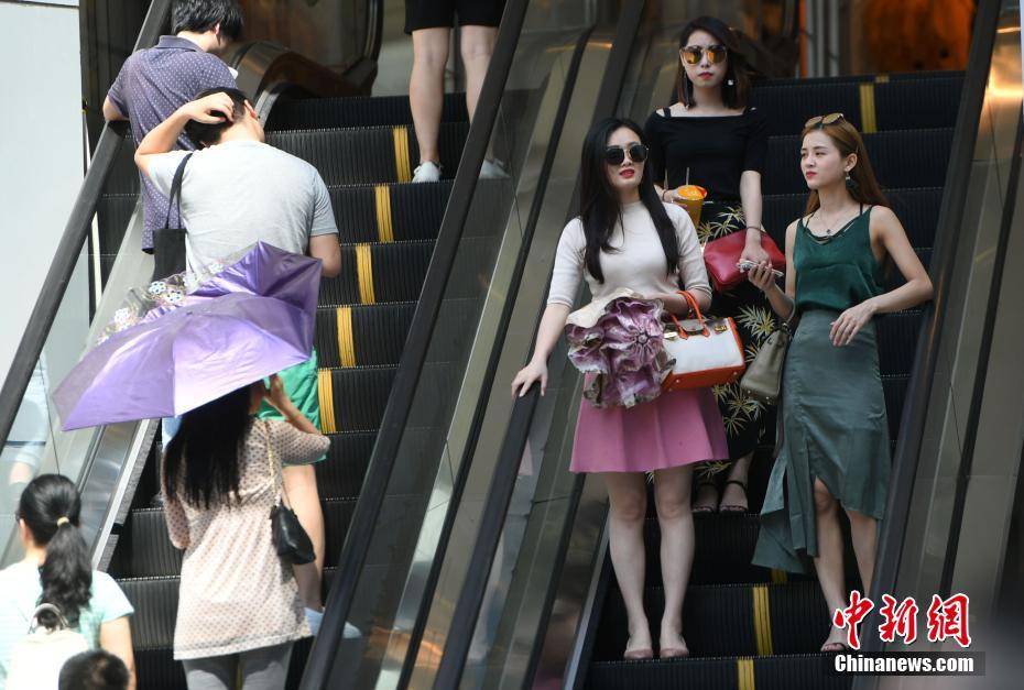 5月17日,觀音橋步行街上美女著涼裝出行。據(jù)中央氣象臺(tái)消息,17日-19日,北方多地將遭遇今年以來(lái)首次大范圍高溫天氣,涉及京津冀、內(nèi)蒙古等7省市區(qū),其中18日高溫范圍最廣、強(qiáng)度最大,內(nèi)蒙古東部偏南地區(qū)局地更有可能出現(xiàn)38-40℃的最高氣溫。中新社記者 陳超 攝