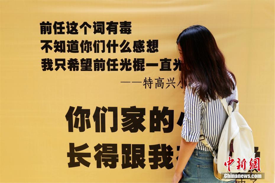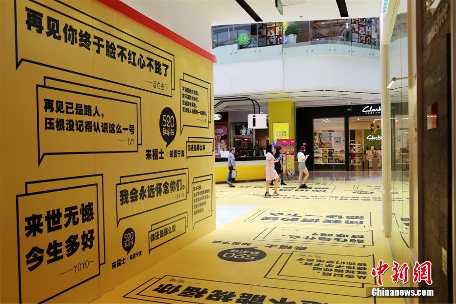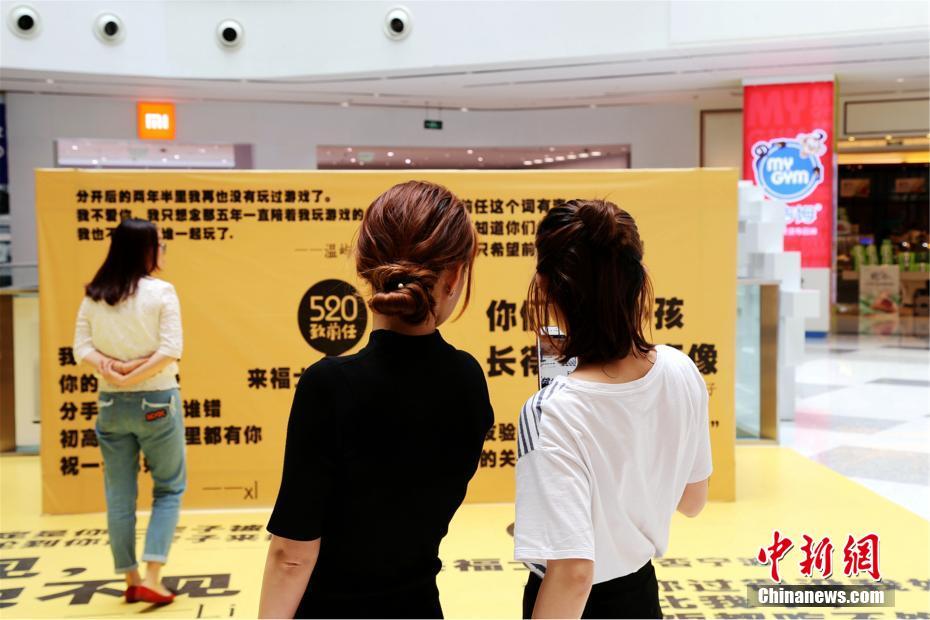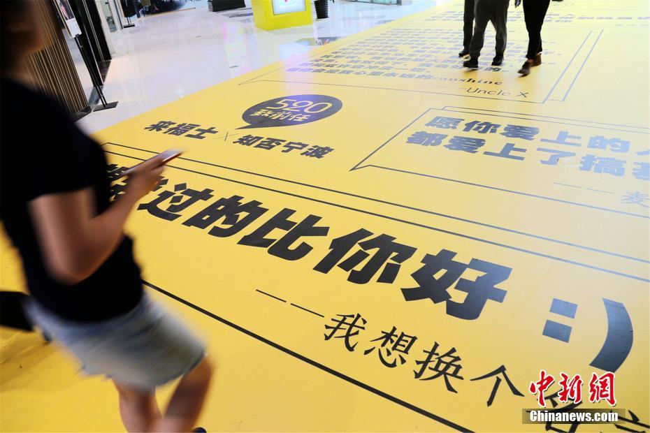 5月18日,在浙江寧波某商場內(nèi),近百條“致前任”留言貼滿了墻壁和地面,引發(fā)不少市民駐留圍觀。據(jù)工作人員介紹,這些句子來自網(wǎng)絡(luò)征集,最終篩選了99名網(wǎng)友留言,希望在“520”這一網(wǎng)絡(luò)情人節(jié)中,引發(fā)人們對愛的共鳴。尤勤勇 攝