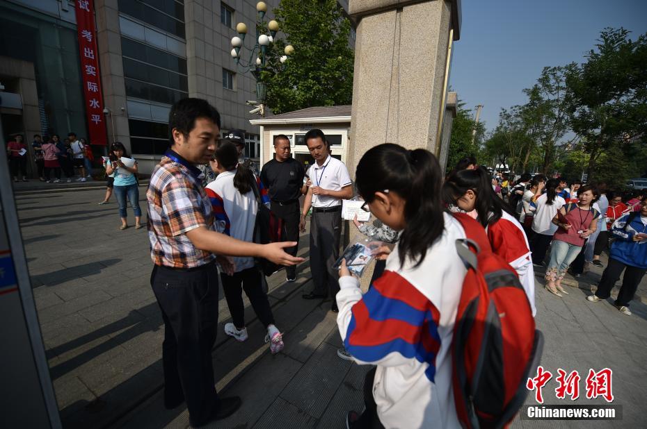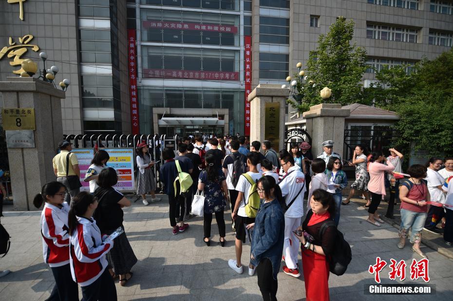 6月7日,2017年高考大幕正式拉開(kāi),全國(guó)將有940萬(wàn)考生參加考試。今年可謂是高考?xì)v史上的特殊年份,一方面,今年是高考恢復(fù)40周年,另一方面,今年也被稱(chēng)為“新高考元年”,高考綜合改革試點(diǎn)地區(qū)的考生將迎來(lái)首次“新高考”。圖為北京市171中學(xué)考點(diǎn)的考生陸續(xù)進(jìn)入考場(chǎng)。中新網(wǎng)記者 金碩 攝