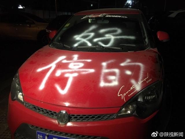 男子到西安方新路吃飯,因為沒車位就把車停在道沿中間,擔心自己的車會擋別人道,他專門留下了聯系方式??墒浅酝晖盹埡笏氐杰嚫皡s看到自己的車被人噴了漆,寫了三個字“停的好”。