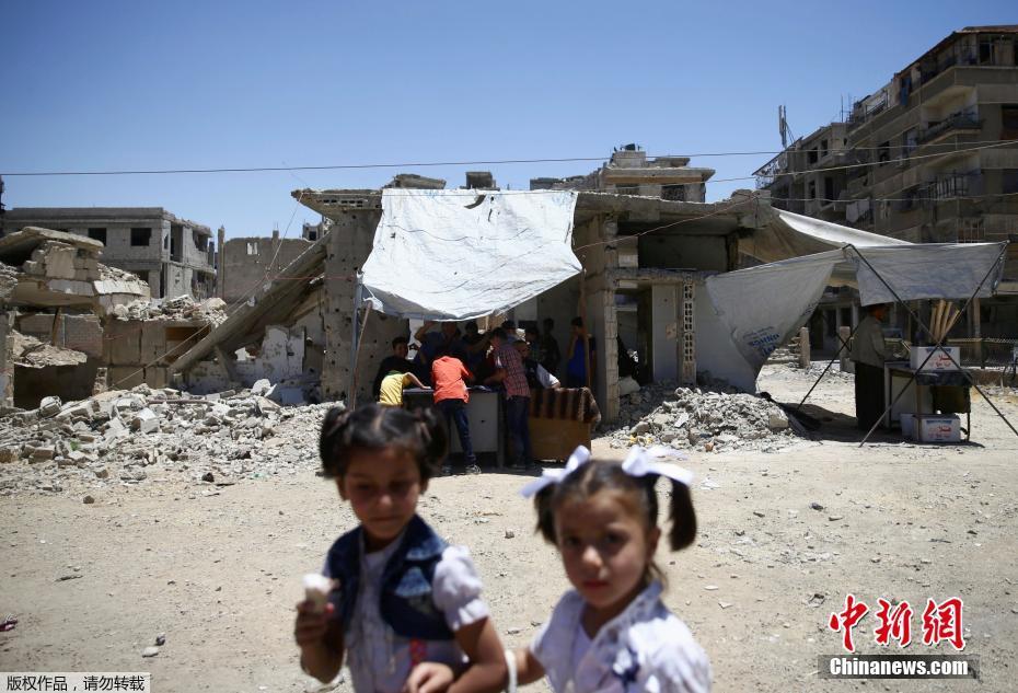 當(dāng)?shù)貢r(shí)間2017年6月26日,敘利亞反對(duì)派控制區(qū)杜馬,兒童慶祝開(kāi)齋節(jié)。